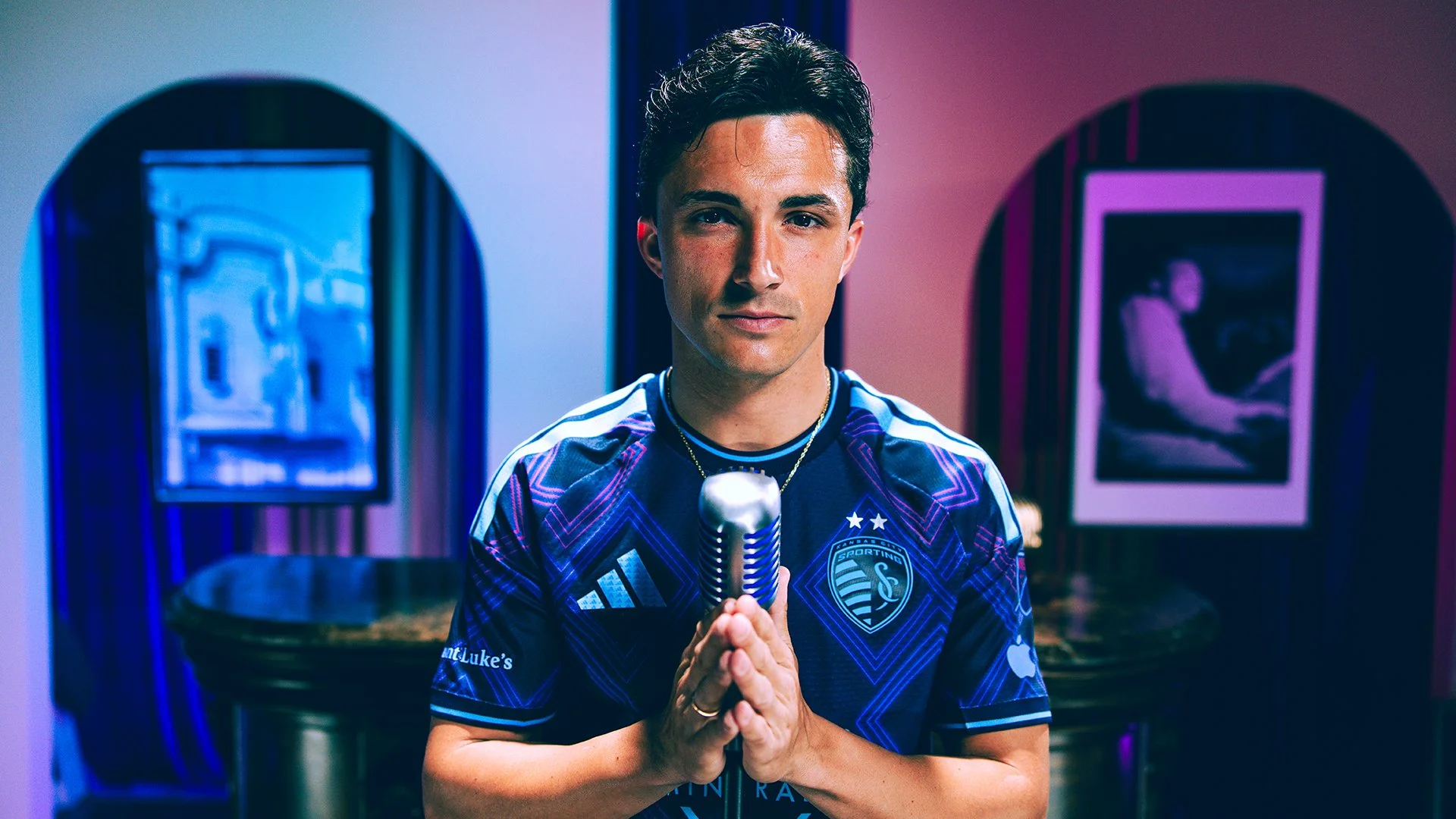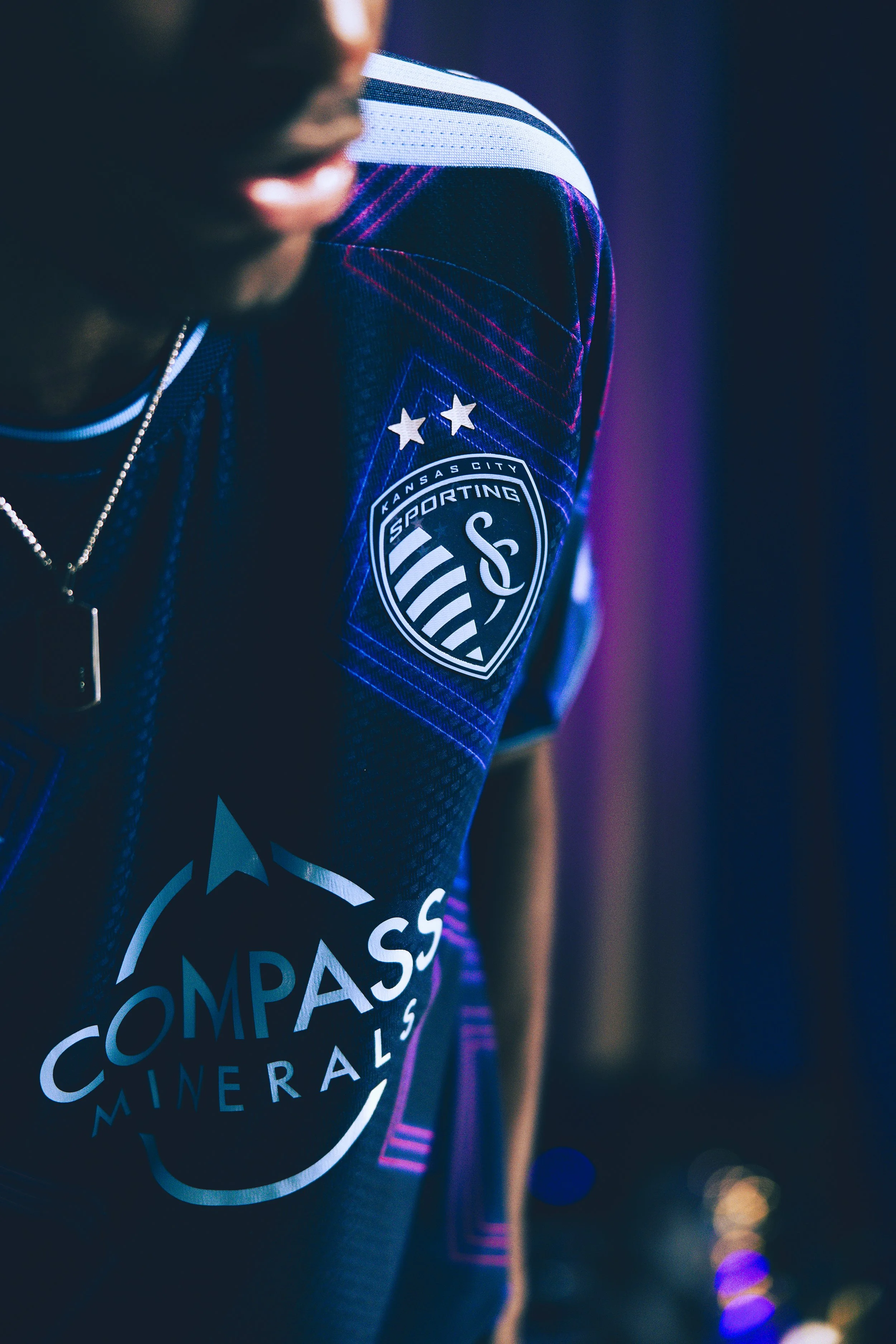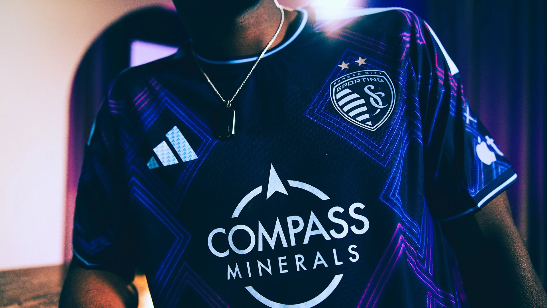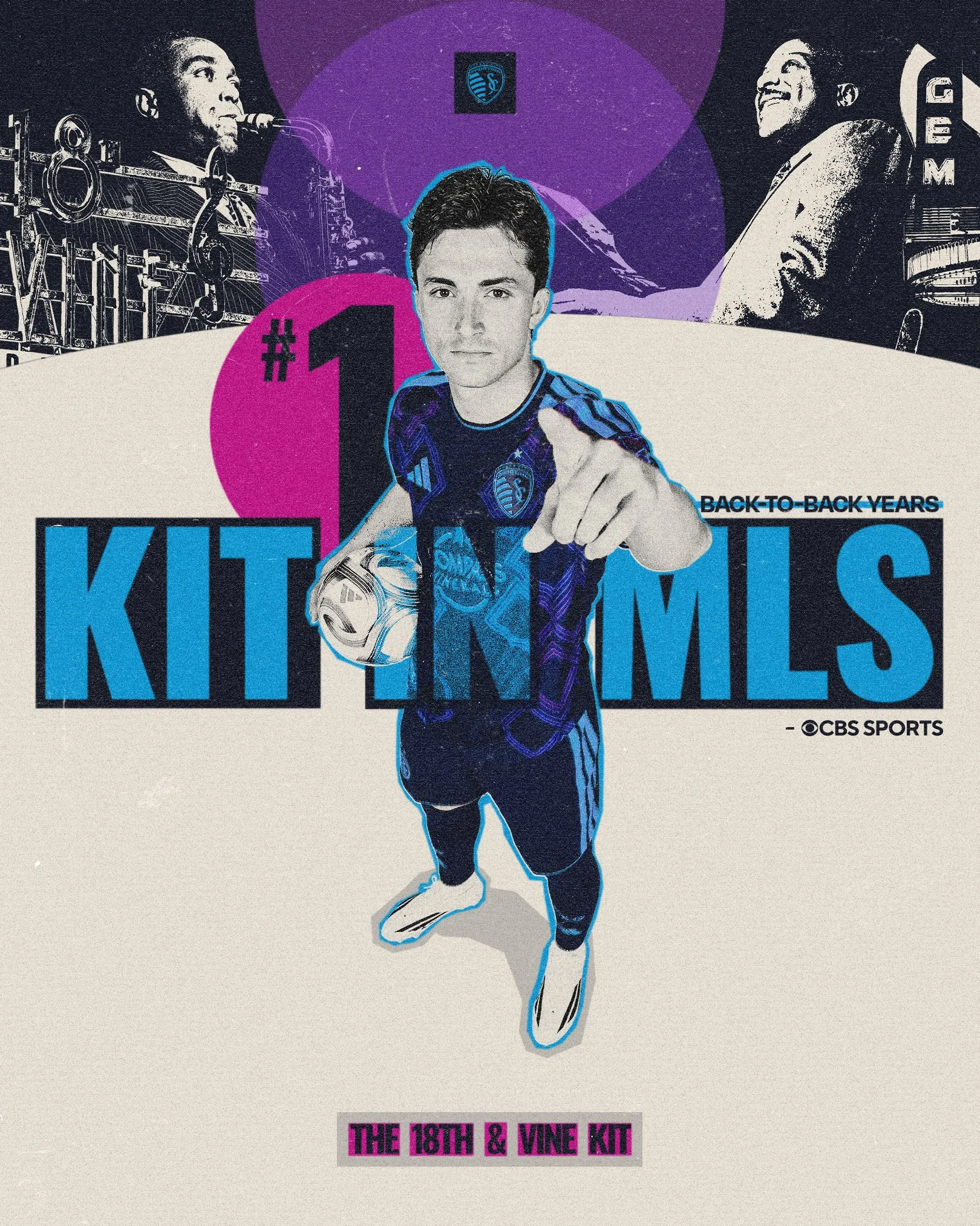 This kit drew inspiration from the neon-lit streets of Kansas City where jazz still rules the soul. Bright, glowing accents draw from the iconic signage of venues like The Blue Room and Gem Theater, bringing the district’s timeless energy to life through Sporting KC’s brand element: The Argyle Diamonds.